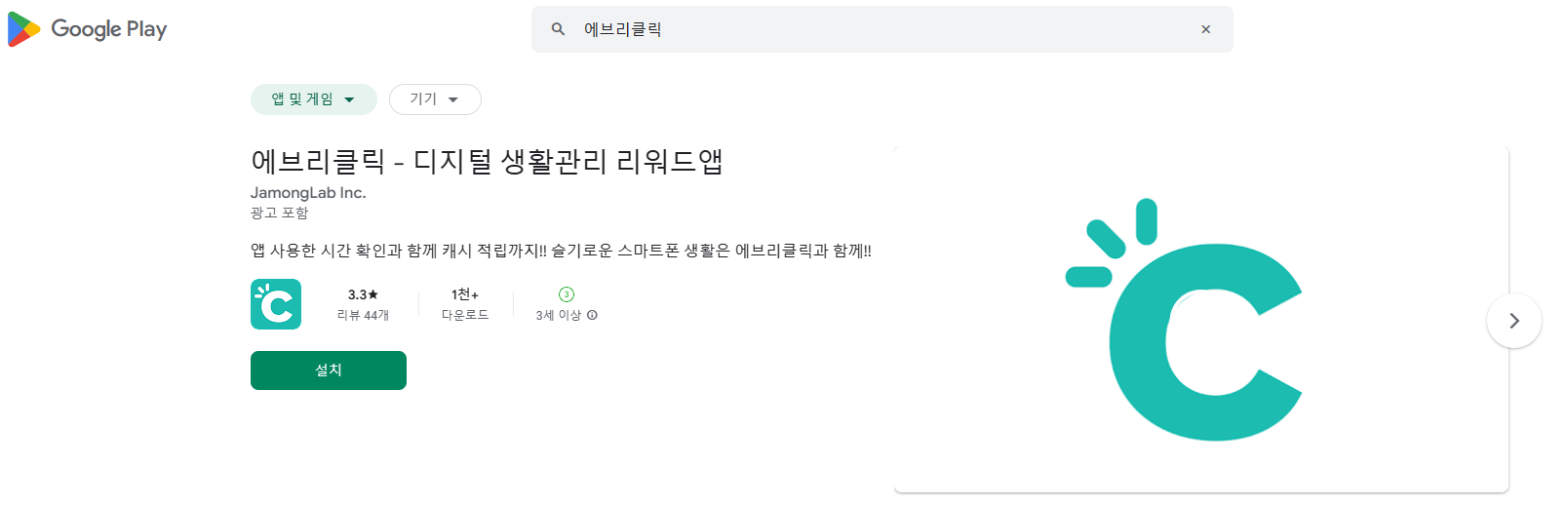 구글 플레이스토어에서 에브리클릭을 검색한 후 설치해줍니다.
