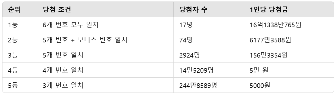 이번 회차의 당첨금 내역은 아래와 같습니다.