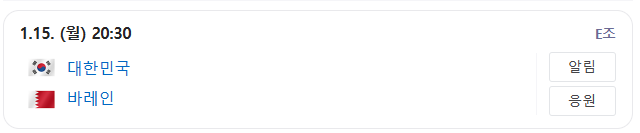 1월 15일(월) 20:30 vs 바레인 (알 가라파 스타디움)